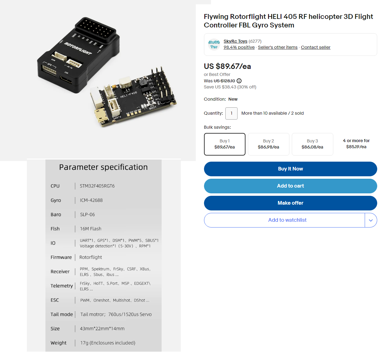 FlyWing HELI 405 STM32F405RGT6 ARM® Cortex®-M4 STM32F4 Microcontroller IC 32-Bit Single-Core 168MHz 1MB (1M x 8) FLASH 64-LQFP (10x10) TDK ICM-42688 SPL06